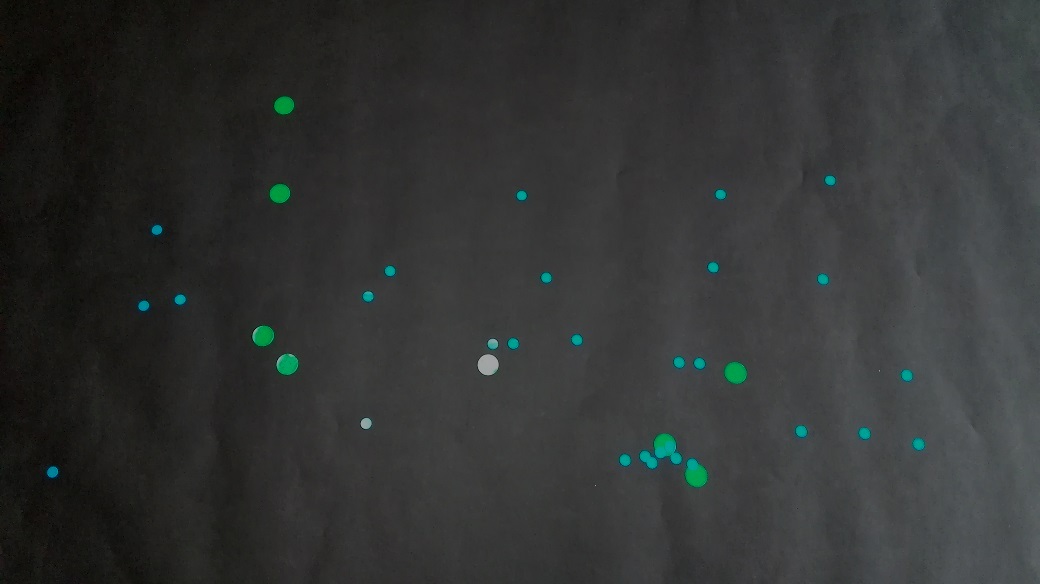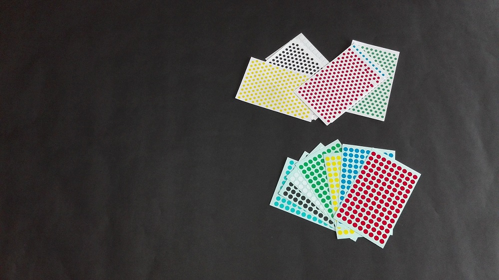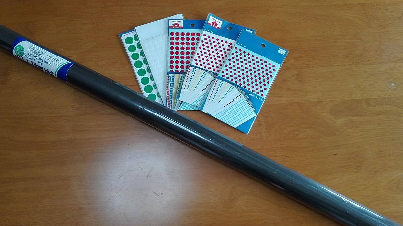 | 1辺が1メートル以上ある黒色の色紙と丸シールを用意します。 | ||