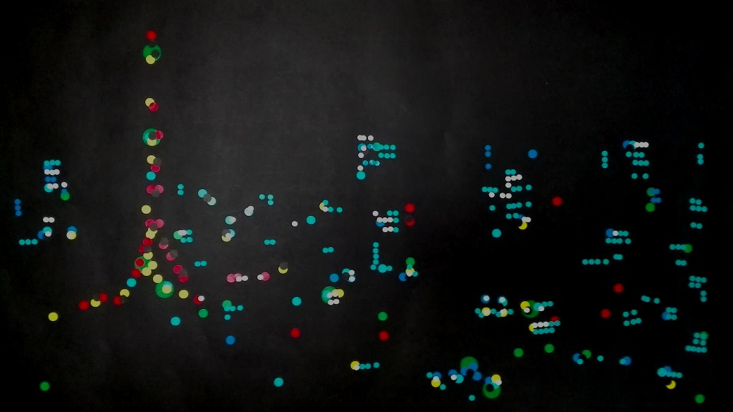 丸シールアート。夜景をバックに光の点を丸シールで表現するアート☆★