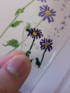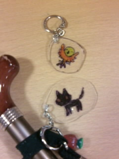 | 今度はキーホルダー を作ってみましょう。 下絵を決めてから 色ペンでモチーフを 写していきます。 |