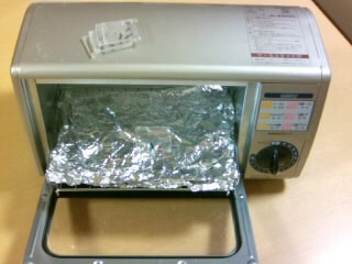 描き終わったプラ バンを、トースター で1枚ずつ熱して いきます。 熱する時間は だいたい1〜2分 です。 |